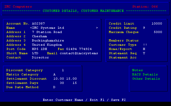 The Customer Maintenance screen allows you to centrally maintain your customer account details.
